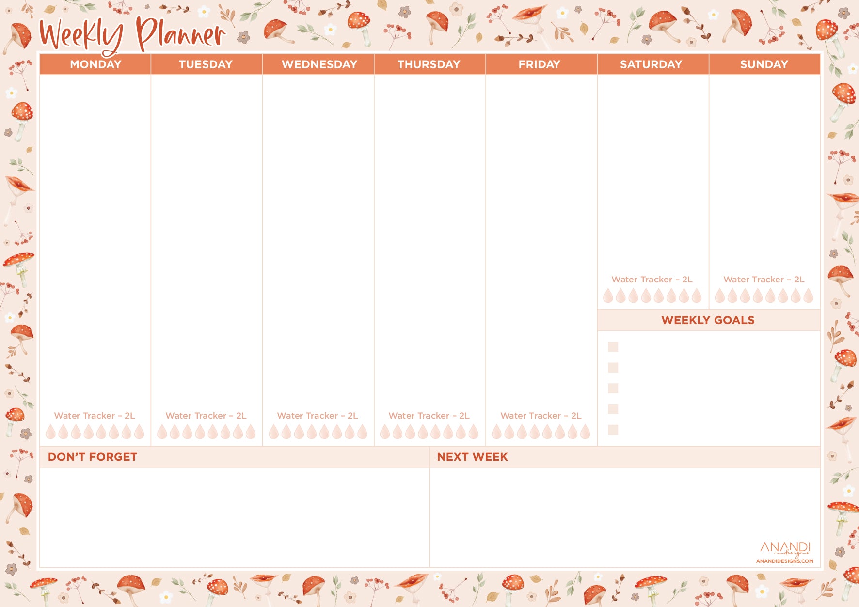 Desktop Weekly Planner A4 - Mushroom Design