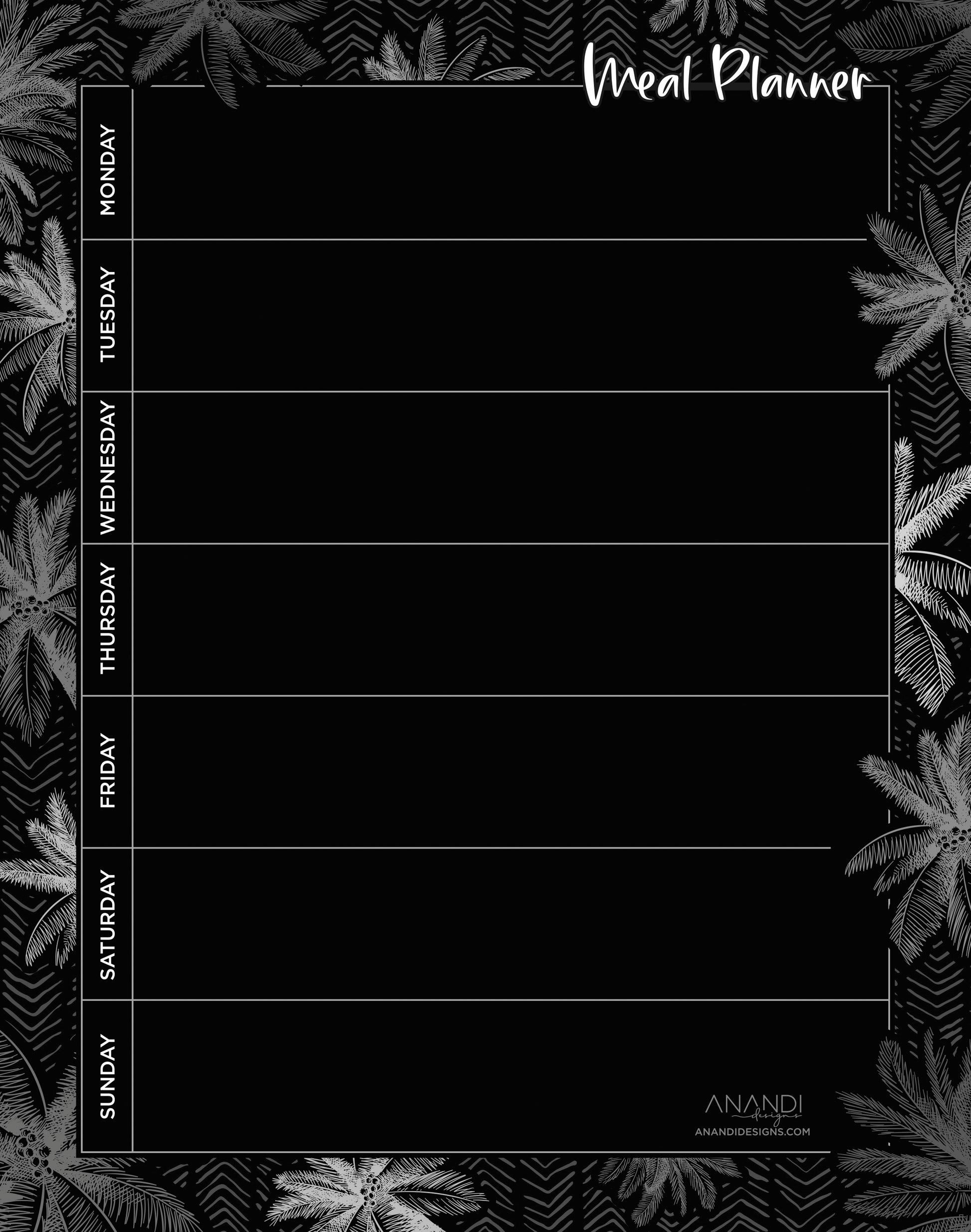Magnetic Meal Planner - Palm Cove Black (20.5cm x 26cm)