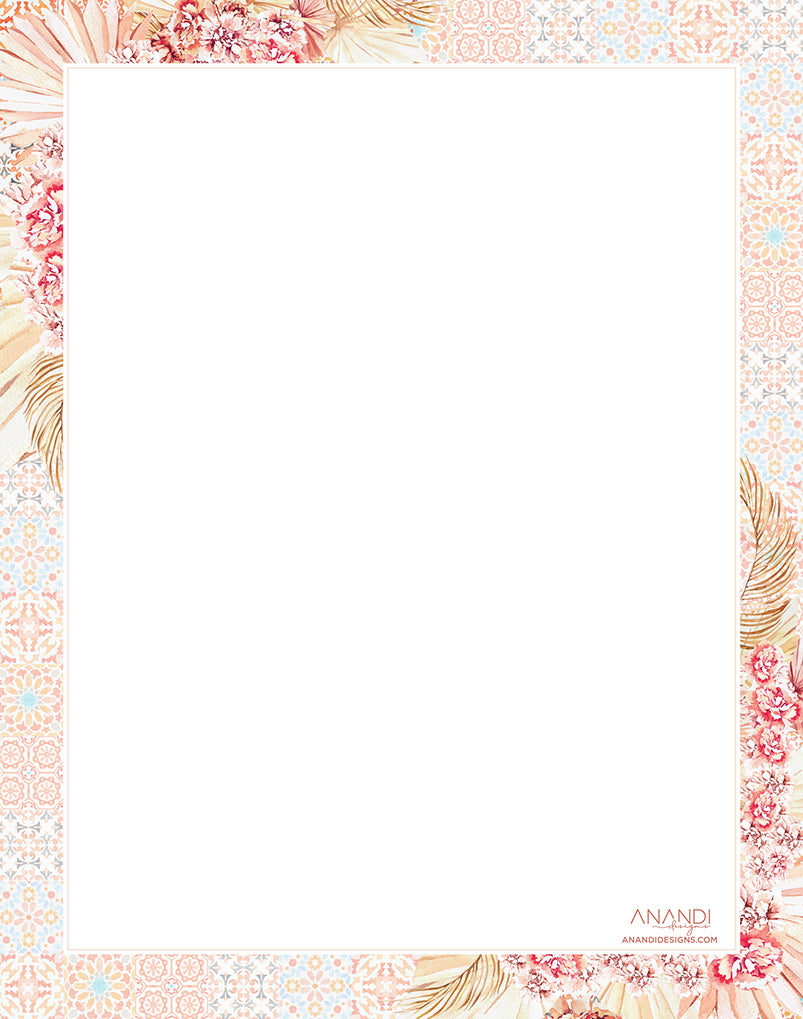 Inspired by a beautiful Moroccan tile pattern overlayed with the pink hues of the boho flower vibes, this design is one for the boho chic(s) and those that like all things pretty.