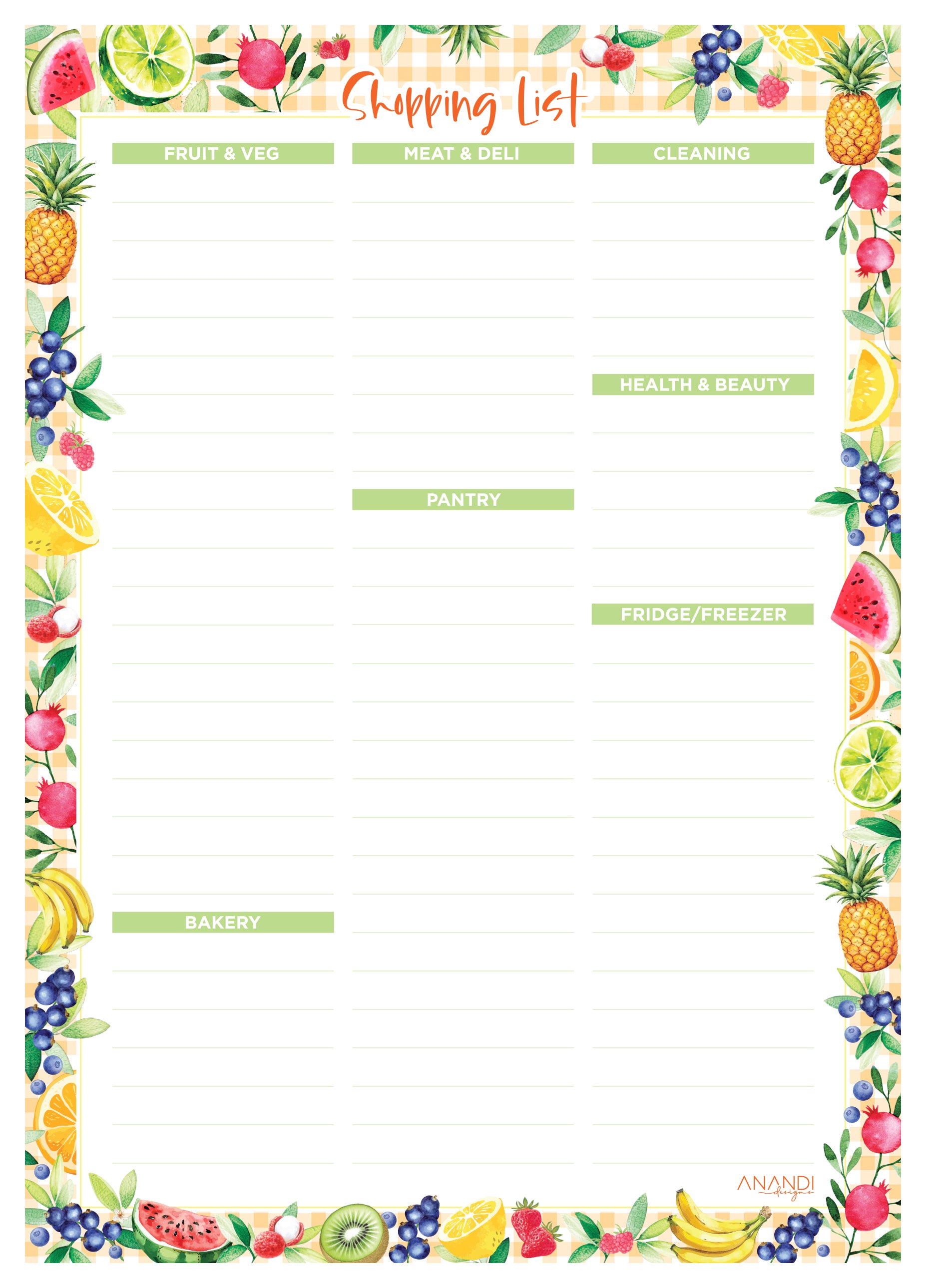 Say goodbye to disorganised grocery shopping with Anandi Designs' Shopping List Pad! Our new pad is designed to help you shop smarter, with itemised categories for your weekly shop.